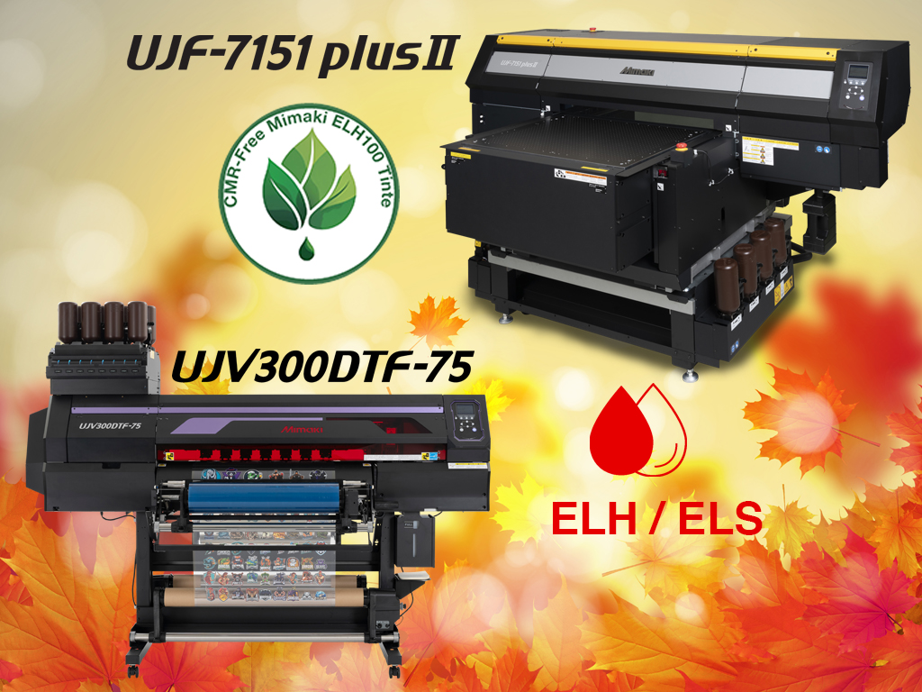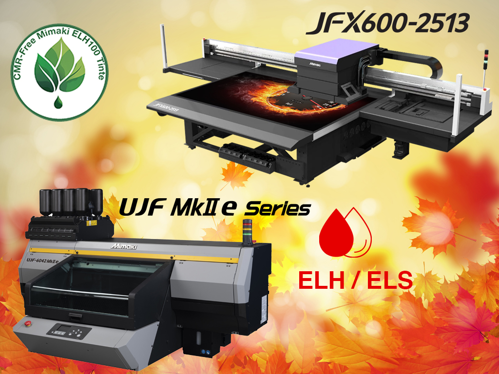 • Die UV-LED-Flachbettdrucker JFX600-2513 und UJF-6042MkII e sind mit der neuen ELH100-Tinte ausgestattet.